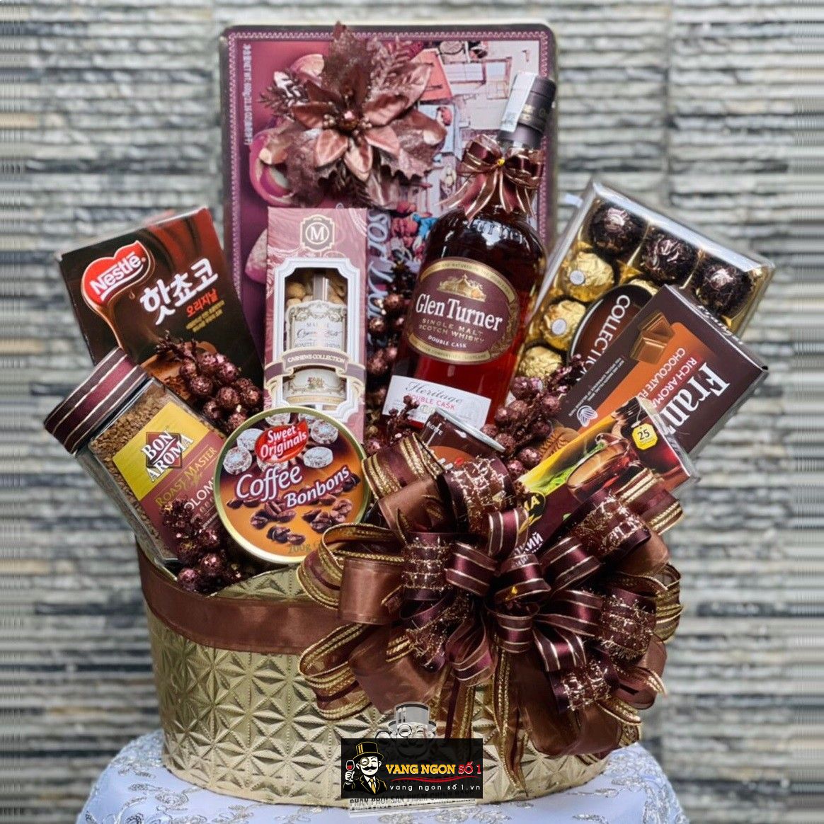 Giỏ Quà Tết Rượu Glen Turner không chỉ là một món quà, mà là sự chia sẻ hương vị nâu độc đáo và quý phái. Đặt hàng ngay hôm nay để gửi đi những lời chúc tốt đẹp và hương vị trọn vẹn của mùa lễ hội. Mỗi chiếc giỏ là một cầu nối giữa truyền thống và hiện đại, làm cho không gian của bạn trở nên ấm áp và phong cách.