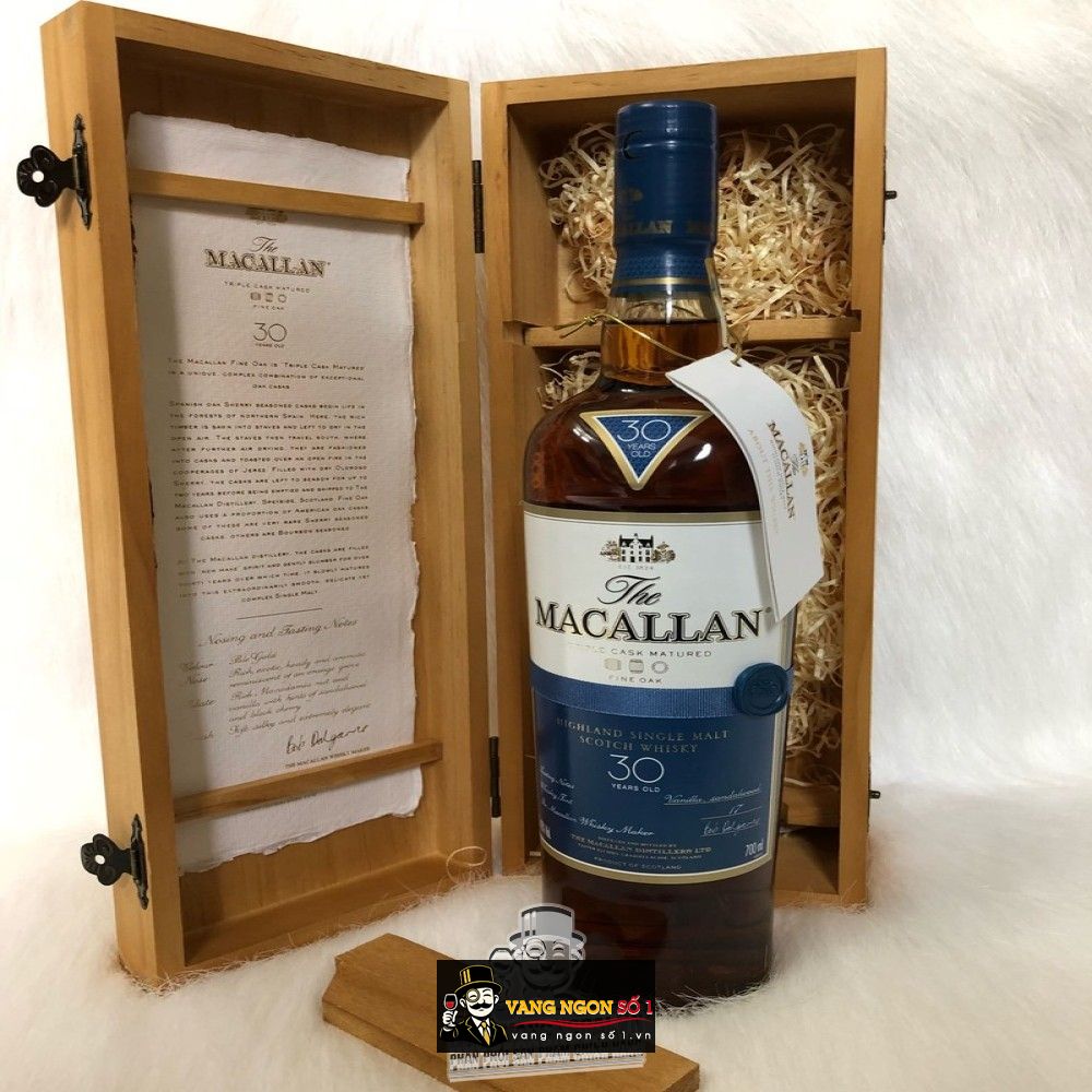 Rượu Macallan 30 là một loại single malt whisky cao cấp đến từ vùng Speyside của Scotland, được ra mắt vào năm 2004 với tên gọi Macallan 30 Fine Oak. Được ủ trong 3 loại thùng gỗ khác nhau, dòng rượu mạnh này nổi bật với hương vị phức tạp và cân bằng tuyệt vời. Năm 2018, trong chiến lược tái định vị thương hiệu, Macallan đã đổi tên bộ sưu tập Fine Oak thành Triple Cask. Do vậy, Macallan 30 Fine Oak cũng được nhắc đến nhiều hơn với cái tên Macallan 30 Triple Cask, nhấn mạnh quy trình ủ độc đáo của rượu.