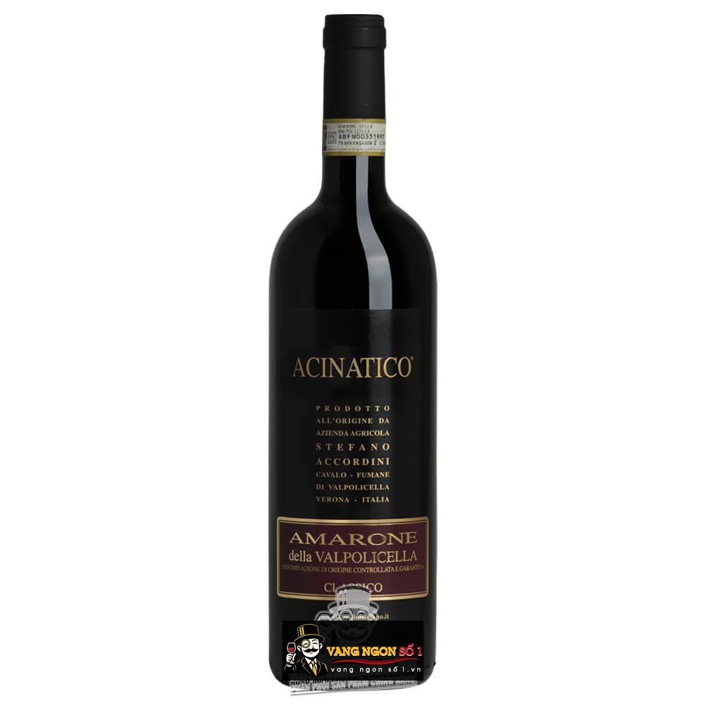 Từ đó thực khách có thể tha hồ lựa chọn để thưởng thức những dòng chất lỏng diệu kì. Trong số đó không thể nào thiếu vắng cái tên Acinatico Amarone Della Valpolicella. Đây là một trong những chai được săn lùng rất nhiều bởi các tín đồ sành vang.