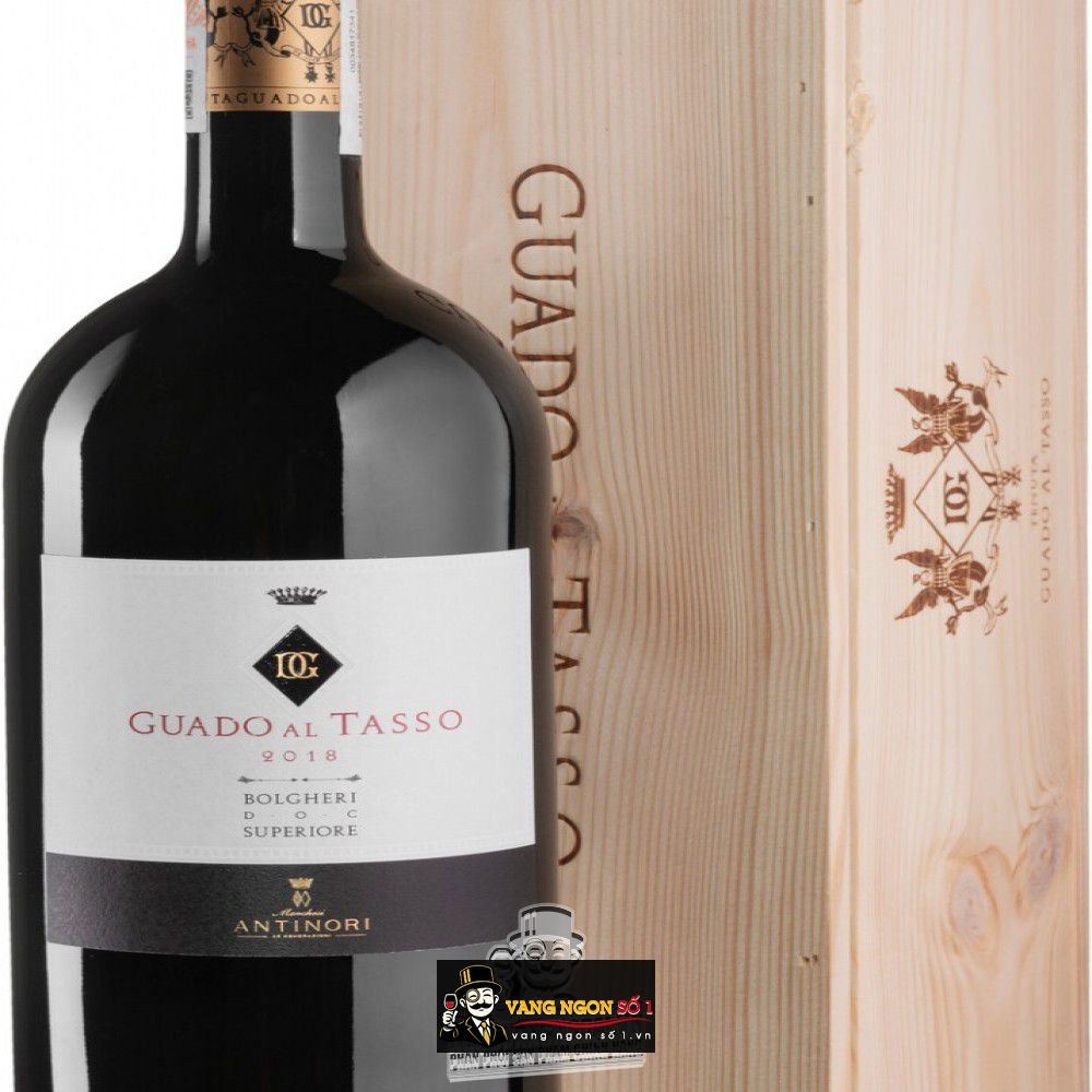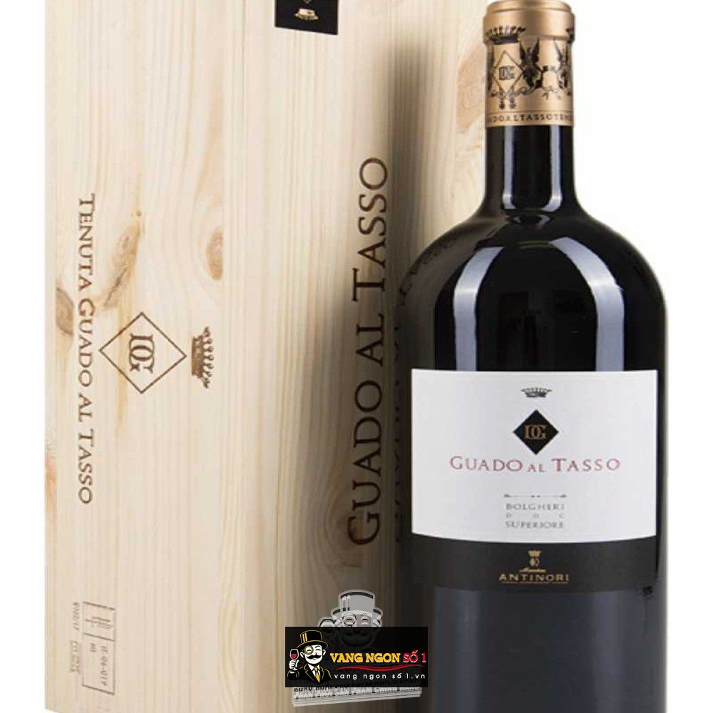 Rượu vang Guado Al Tasso có xuất xứ tại Ý, được làm từ giống nho Merlot và Cabernet Sauvignon, nồng độ cồn 14%. Chai rượu vang này là đứa con tinh thần của nhà sản xuất Antinori là một hãng sản xuất rượu vang nổi tiếng nhất nước Ý, có lịch sử phát triển từ những năm 1385. Trải qua biết bao thăng trầm, với các cuộc thử thách được coi là cuộc cách mạng của ngành rượu vang của những chai vang thượng hạng. Sự xuất hiện của chai rượu vang này đánh dấu thêm một loại vang trong danh sách “ các chai vang thượng hạng” của nước Ý