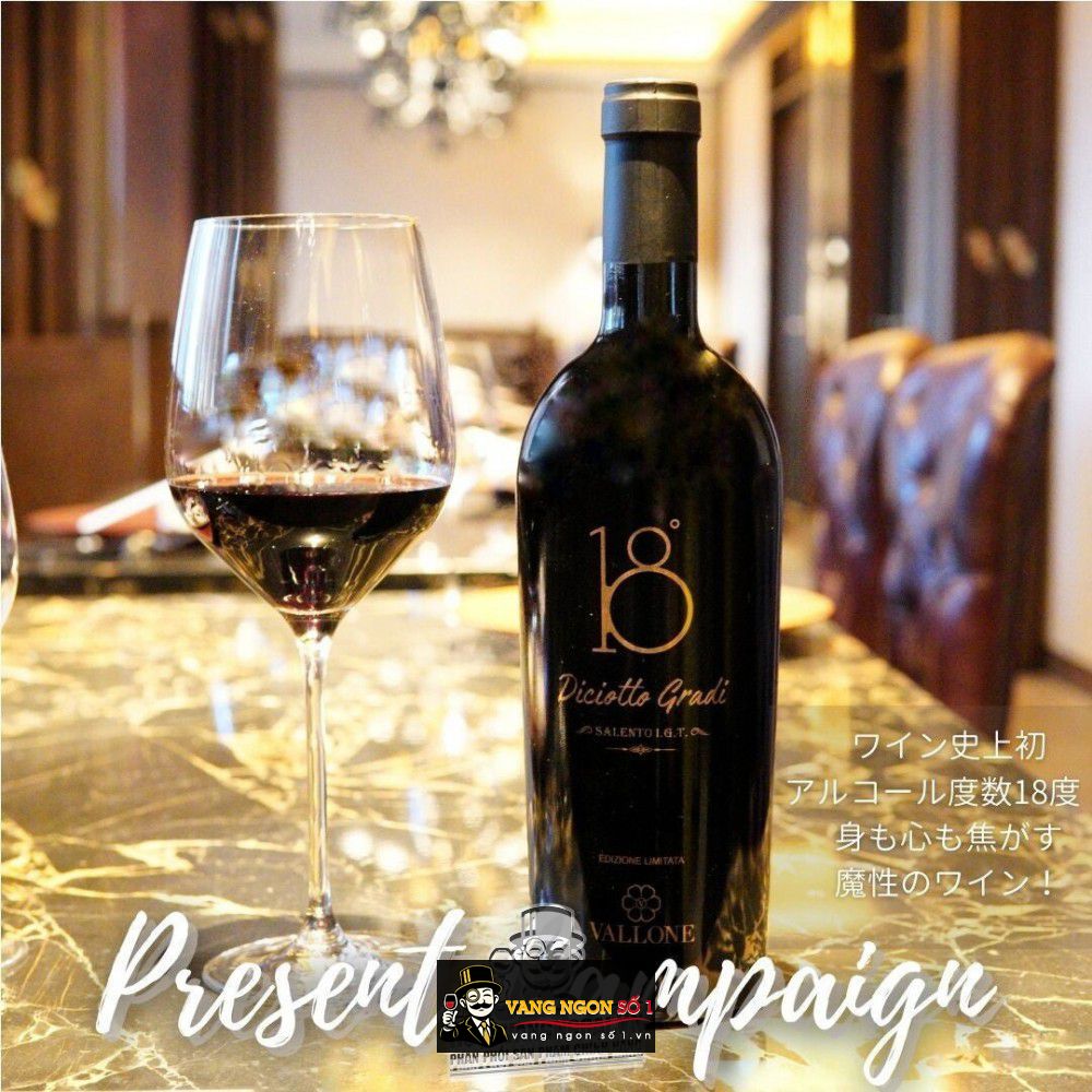 Vangngonso1.vn chuyên phân phối các loại vang nhập khẩu cao cấp, mang đến cho quý vị những trải nghiệm tuyệt vời về sự tinh tế khi thưởng thức rượu vang. Với hơn 20 năm kinh nghiệm bán rượu vang, Vang ngon số 1 tự hào là điểm đến lý tưởng cho những ai yêu thích rượu vang tinh tế. Bạn đang săn lùng một chai rượu ngon nhất với hương vị vang thanh tao thì Rượu vang Ý DICIOTTO GRADI VALLONE Uống ngon chính là lựa chọn hoàn hảo nhất dành cho quý vị yêu rượu.