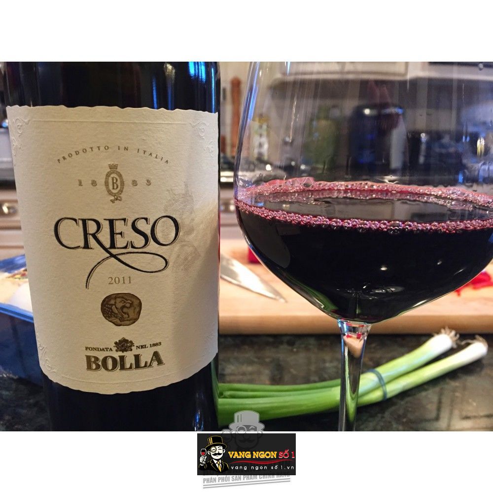 Vang Ý Creso Bolla được sản xuất từ những giống nho chọn lọc ngon nhất của Ý, Với màu đỏ thẫm pha chút ánh tím lúc đầu