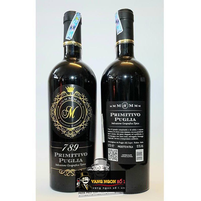 Vang ý M 789 PRIMITIVO PUGLIA 15% VOL là dòng rượu vang rất chất lượng, được làm từ 100% giống nho Primitivo, một giống nho truyền thống, và được coi là gống nho bản địa của khu vực Pulgia này.