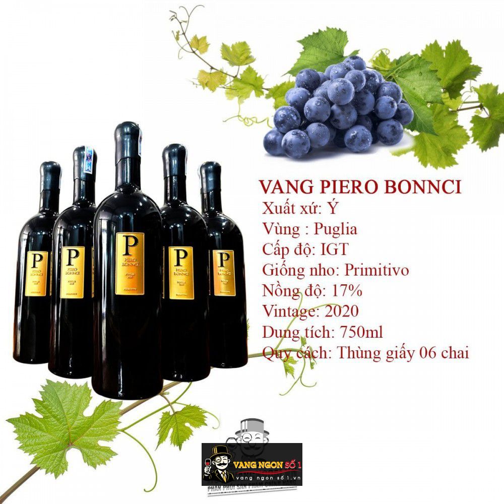 Vangngon số 1 là điểm đến số 1 khi nghĩ đến các loại vang. Nhanh tay đặt mua ngay Rượu Vang Ý Piero Bonnci Primitivo 17 Độ uống ngon để có giá rẻ sập sàn để được giao rượu vang freeship mọi nơi.