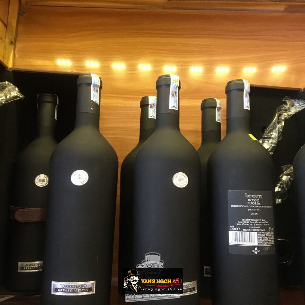 Rượu vang Ý Torreserro Appassimento được lên men từ hỗn hợp 40% Primitivo, 30% Negroamaro và 30% Malvasia Nera. Rượu được ủ trong 18 tháng trong gỗ sồi Pháp (lần thứ hai) tạo nên sắc đỏ với các sắc thái ngọc hồng lựu trông rất đẹp mắt. Chai vang xuất sắc này không chỉ mang thiết độc đáo, vỏ chai nhám trông rất huyền bí mà còn được đánh giá cao bởi Luca Maroni và dành được giải thưởng Decanter World Wine Awards nổi tiếng thế giới.