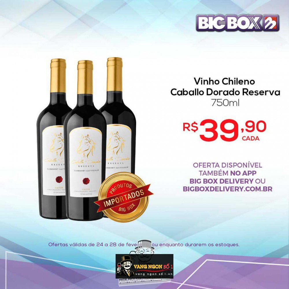 Vang ngon chuyên phân phối rượu vang nhập khẩu cao cấp, đem lại cho khách hàng những trải nghiệm tuyệt vời về sự tinh tế khi thưởng thức rượu vang. Với hơn 20 năm kinh nghiệm cung cấp rượu vang, Vang ngon số 1 tự hào là nơi bán lý tưởng cho những ai yêu thích rượu vang đẳng cấp. Bạn đang muốn mua một chai rượu vang siêu ngon với hương vị vang dễ uống thì Vang Chile Caballo Dorado Reserva Cabernet Sauvignon chính là lựa chọn hoàn hảo nhất dành cho quý vị đam mê rượu.