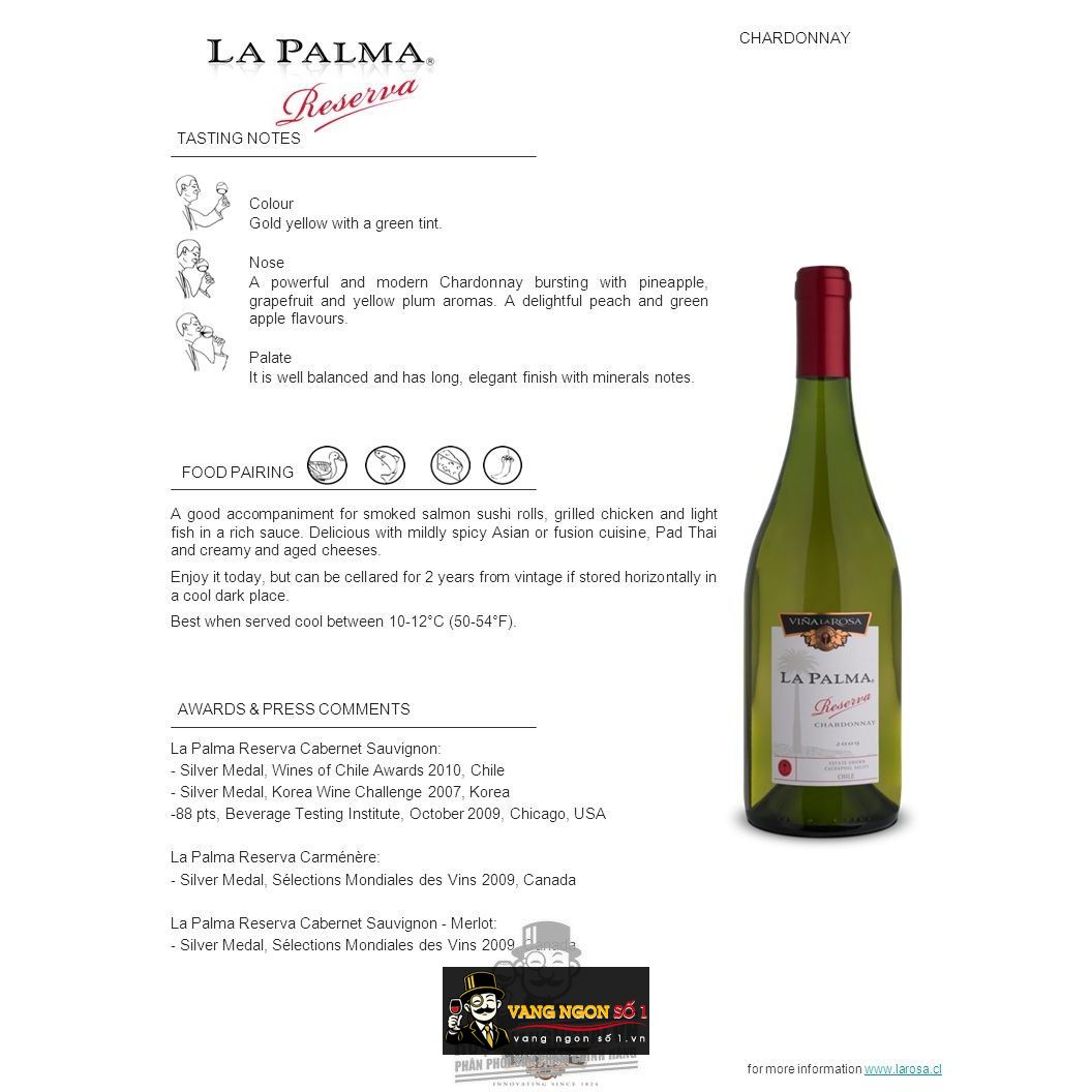 Vangngon số 1 là điểm đến đầu tiên khi quý vị nghĩ tới các loại rượu xịn. Nhanh tay đặt hàng ngay Vang Chile La Palma reserva Chardonnay để có giá ưu đãi hơn cùng với chính sách giao hàng miễn phí mọi nơi.