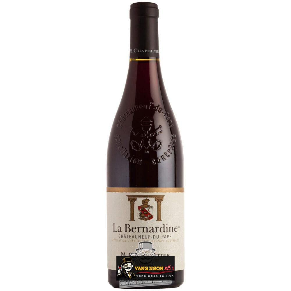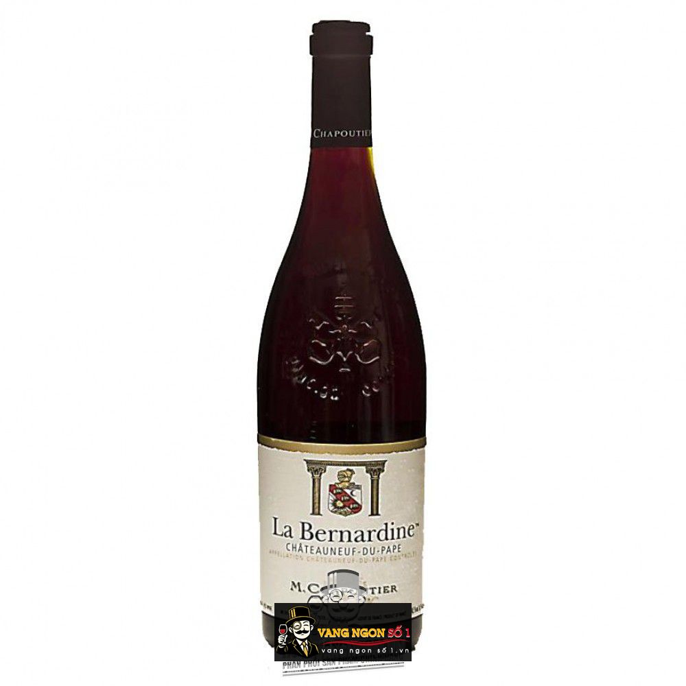 Dòng rượu vang đỏ La Bernardine Chateauneuf du Pape M.Chapoutier cung cấp sức mạnh tập trung của nhiều hương vị giàu tiềm năng cá tính. Những trái nho đỏ trưởng thành thong phương thức truyền thống làm già nho đi trong thùng bê tông. Sức mạnh ấn tượng của màu đỏ tối ấn tượng trở nên hài hòa hơn cùng nồng độ tannin mạnh mẽ.
