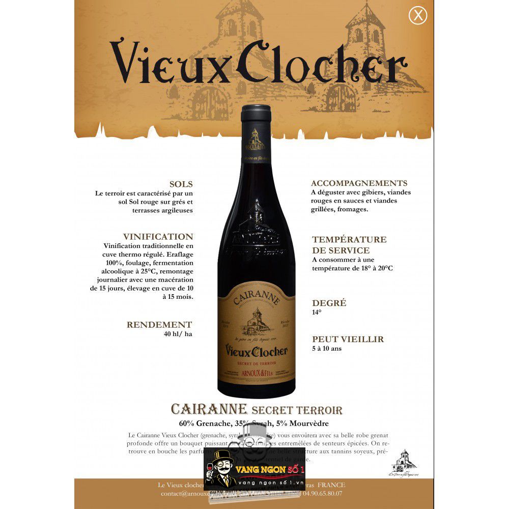 Vangngonso1.vn chuyên cung cấp các loại vang nhập khẩu chính hãng, mang lại cho quý vị những trải nghiệm đẳng cấp về hương vị khi mua rượu vang. Với nhiều năm kinh nghiệm bán rượu vang, chúng tôi tự tin là điểm bán lý tưởng cho thực khách yêu thích rượu tinh tế. Quý khách đang tìm mua một chai rượu vang nhập khẩu với hương vị vang đậm đà đầy quyến rũ thì Vang Pháp Cairanne Vieux Clocher chính là lựa chọn hoàn hảo dành cho bạn yêu thích rượu vang.