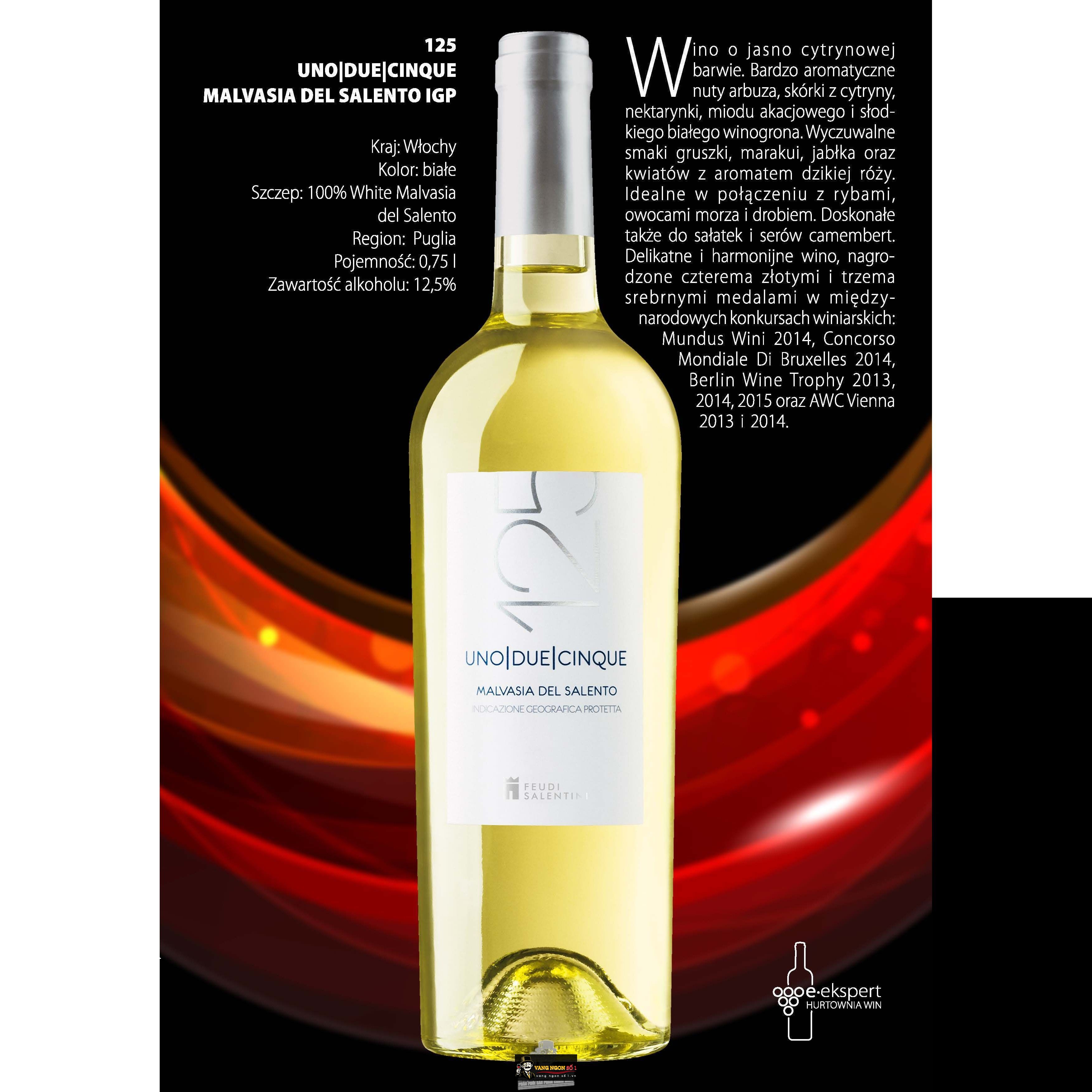Vang ngon chuyên phân phối các loại rượu nhập khẩu cao cấp, mang đến cho quý khách những trải nghiệm tuyệt vời về sự tinh tế khi thưởng thức rượu vang. Với hơn 20 năm kinh nghiệm cung cấp rượu, Vang ngon số 1 tự hào là điểm đến lý tưởng cho những ai yêu thích rượu vang thượng hạng. Bạn đang tìm kiếm một chai rượu vang siêu ngon với hương vị hoàn hảo thì Vang ý 125 Malvasia del Salento chính là lựa chọn hoàn hảo nhất dành cho quý vị yêu rượu.