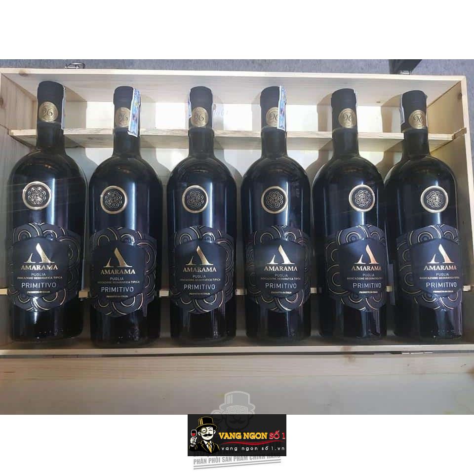 Rượu vang Amarama là một chai vang Ý tốt đạt 96 điểm của nhà sản xuất Provinco . Được làm từ 100% nho Primitivo ủ trong thùng gỗ sồi cũ của Pháp 12 tháng. Một trong những loại nho được coi là vua ở vùng Puglia quả nhỏ màu đen sẫm và vỏ dày. Rượu có hương vị vị thảo mộc, hoa của than chì, violets và thuốc lá và trái cây nổi bật. Bạn sẽ thường xuyên nhận được gợi ý của anh đào màu đen và cam thảo.