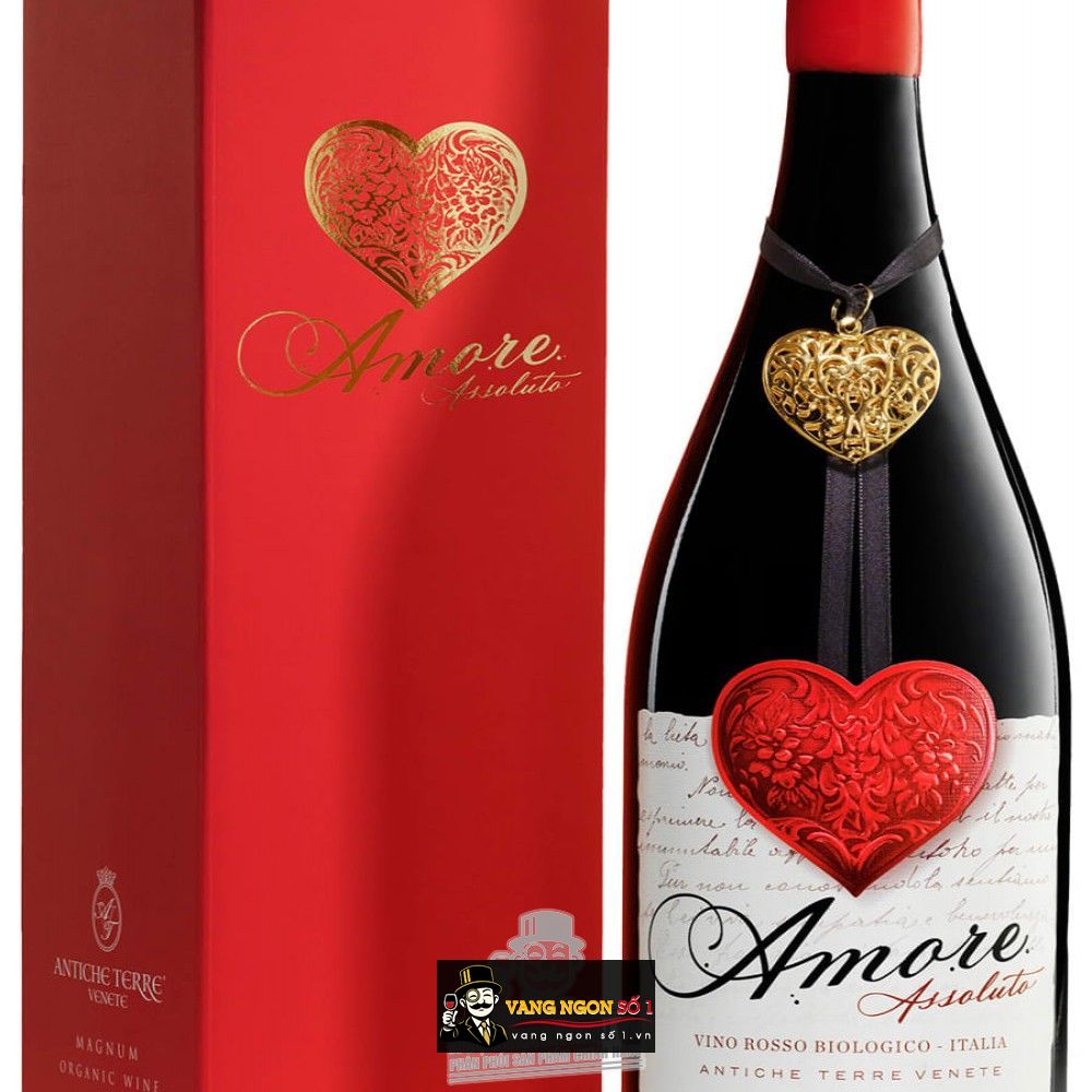 Vang Ý nhập khẩu Amore Assoluto Vino Rosso Biologico là bản tình ca lãng mạn của nhà rượu Antiche Terre Venete. Rượu gây ấn tượng mạnh với nhãn chai có trái tim đỏ nồng thắm, như một lời gợi ý về hương vị quyến rũ bên trong. Vang đỏ Amore Assoluto Vino Rosso Biologico được sản xuất từ nhiều giống nho địa phương và quốc tế khác nhau, trồng theo phương pháp hữu cơ.