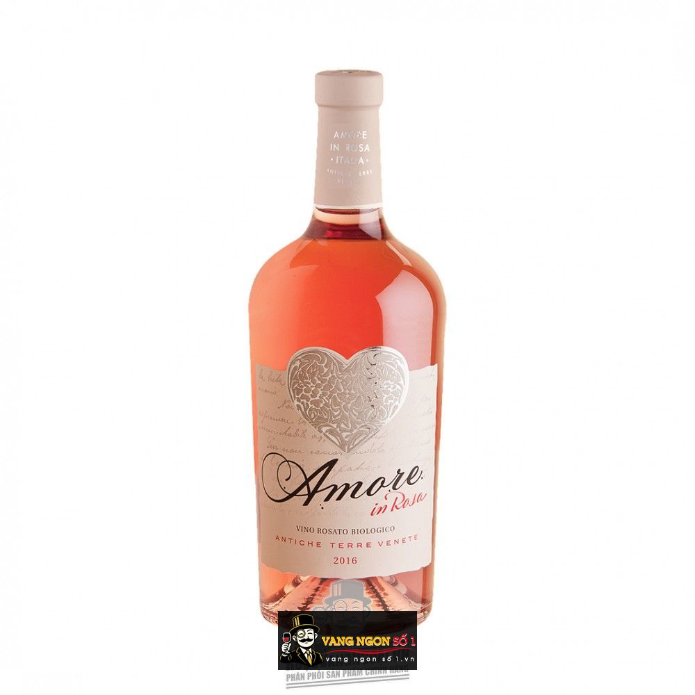 Vang hồng Amore In Rosa Vino Rosato Biologico là chai rượu vang thứ ba trong bộ ba rượu vang tình yêu của nhà rượu Antiche Terre Venete. Rượu vang Amore In Rosa Vino Rosato Biologico được tạo nên từ nhiều giống nho bản xứ và một số giống nho hữu cơ khác. Rượu vang hữu cơ Amore In Rosa Vino Rosato Biologico có nồng độ 13% khá nhẹ nhàng. Màu rượu là màu hồng sáng bắt mắt.