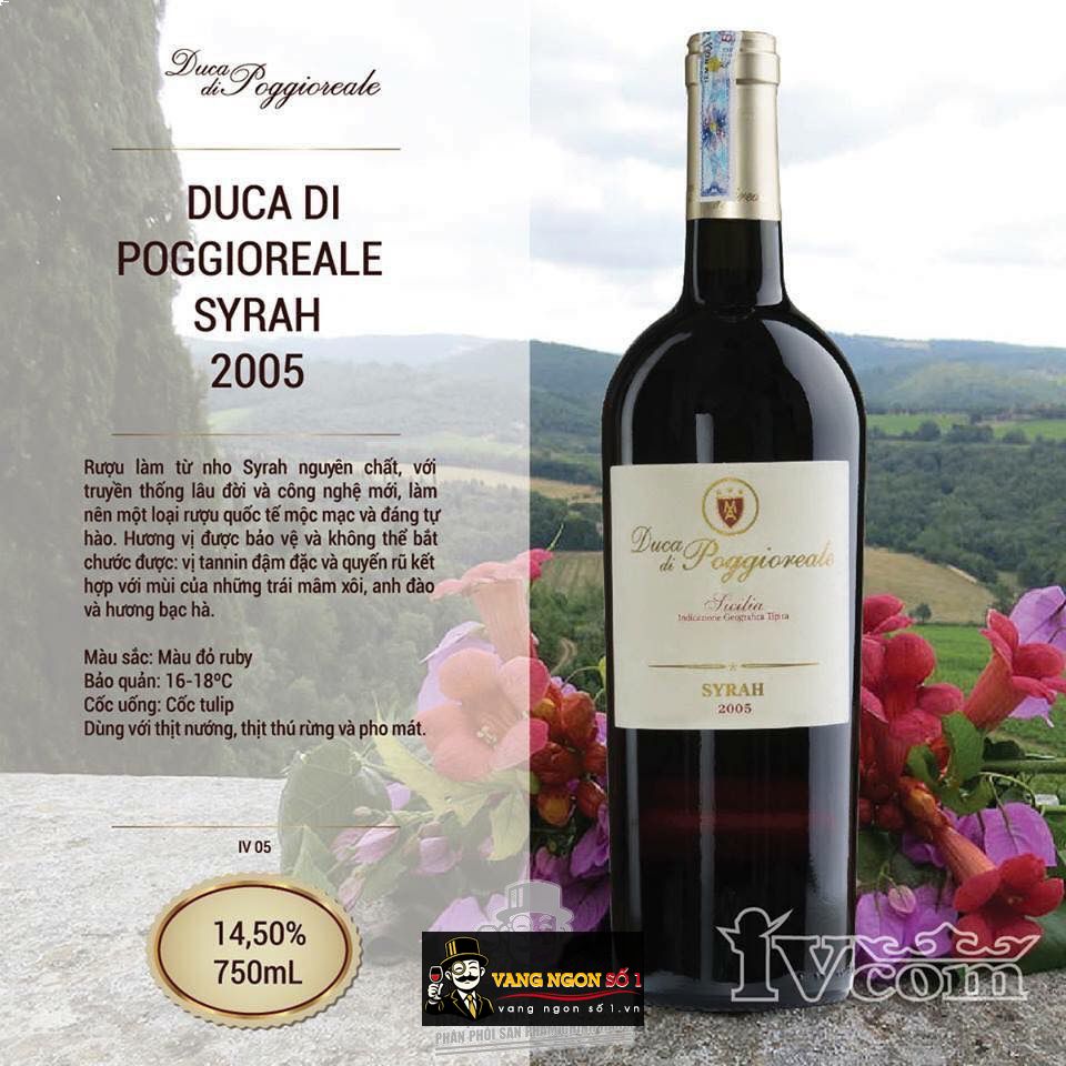 Vang ngon số 1 VN chuyên bán các loại vang nhập khẩu chính hãng, mang lại cho quý vị những trải nghiệm đẳng cấp về chất lượng khi mua rượu vang. Với nhiều năm kinh nghiệm bán rượu vang, vangngon tự tin là điểm bán lý tưởng cho thực khách yêu thích rượu tinh tế. Quý khách đang muốn lựa chọn một chai rượu vang uống ngon với hương vị vang ngọt ngào thì Vang Ý Duca Di Poggioreale Cabernet Sauvignon 2005 chính là lựa chọn tuyệt vời dành cho quý khách yêu thích rượu vang.