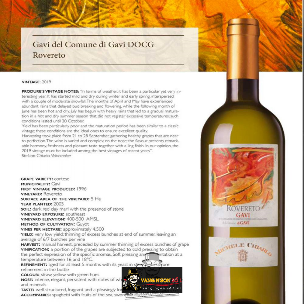Vangngonso1.vn chuyên cung cấp các loại rượu vang nhập khẩu chính hãng, đem đến cho bạn những trải nghiệm đẳng cấp về hương vị khi mua rượu vang. Với nhiều năm kinh nghiệm trong ngành, chúng tôi tự tin là địa chỉ lý tưởng cho thực khách yêu thích rượu cao cấp. Quý khách đang tìm kiếm mua một chai rượu vang nhập khẩu với hương vị rượu vang mượt mà thì Vang Ý Michele Chiarlo Rovereto Gavi chính là lựa chọn hoàn hảo dành cho bạn đam mê vang.