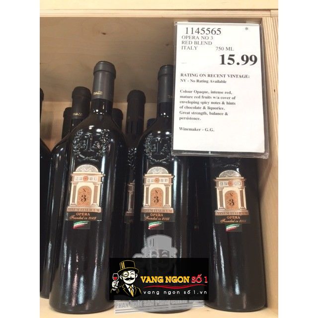 Vang ngon số 1 VN chuyên cung cấp các loại vang nhập khẩu cao cấp, mang đến cho quý vị những trải nghiệm tuyệt vời về hương vị khi thưởng thức rượu vang. Với hơn 20 năm kinh nghiệm bán rượu vang, chúng tôi tự hào là điểm đến lý tưởng cho những ai yêu thích rượu vang tinh tế. Bạn đang tìm kiếm một chai rượu vang nhập khẩu giá rẻ với hương vị vang dễ thưởng thức thì Vang Ý N3 OPERA 2005 chính là lựa chọn không thể bỏ qua dành cho bạn yêu rượu.