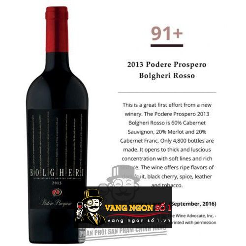 BOLGHERI là một sự khởi đầu đầy mạnh mẽ, với những đặc điểm hết sức thú vị, thấm đượm vào lòng người thưởng thức, chính vì thế mà bất kỳ ai dùng chai rượu này xong đều ghi nhớ tới những giá trị ẩm thực của nó mang lại